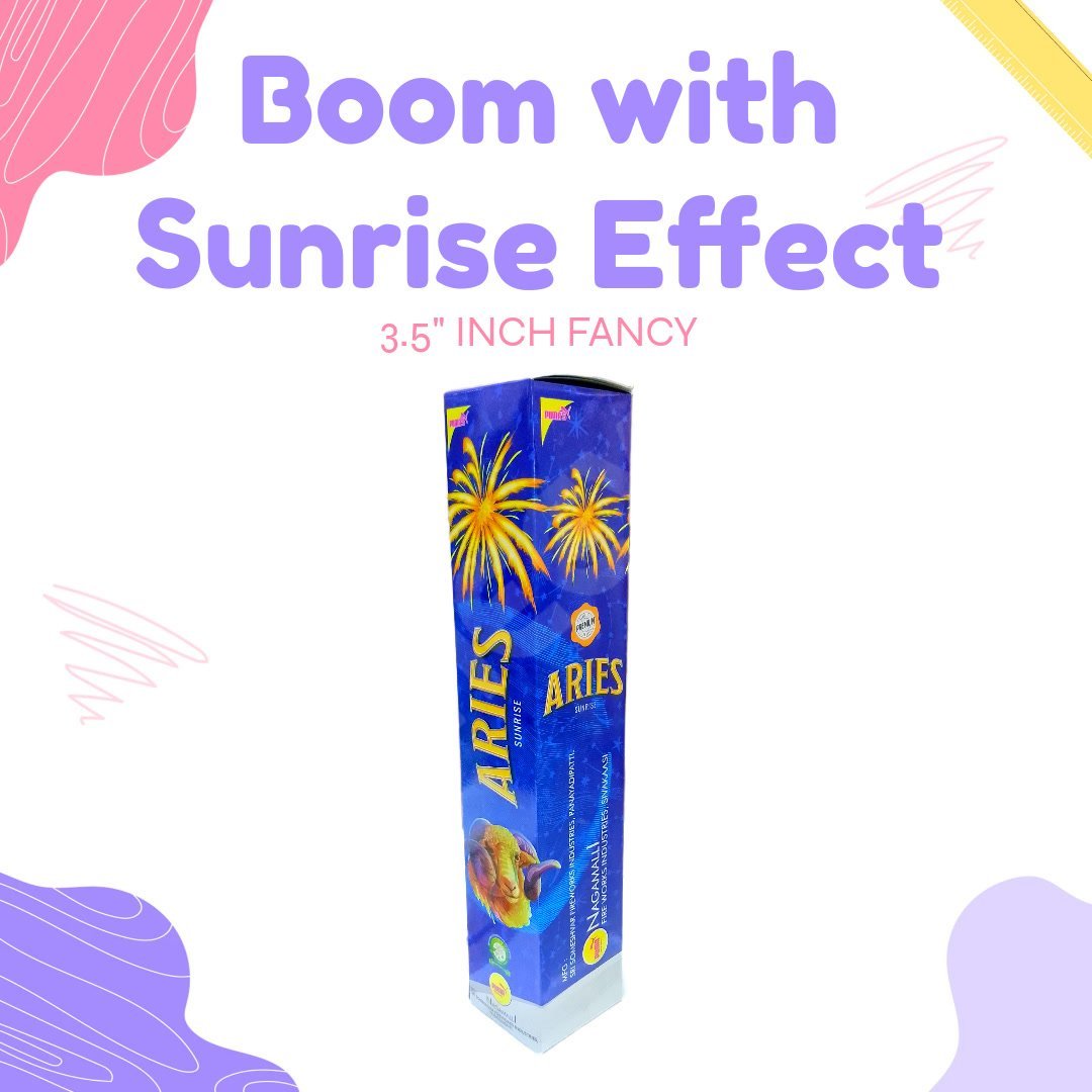 Light up your festive nights with Aries – 1Pc/Box – 3.5″ Fancy Shot, a high-impact sky cracker designed to thrill. This powerful single-shot firework delivers an electrifying boom sound and then opens into a dazzling sunrise burst effect, illuminating the sky with brilliance and joy.